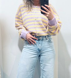 Trui blauw met bruine streep