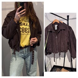 Dit jasje is gevoerd met teddy van binnen en het model op de foto heeft de ml aan